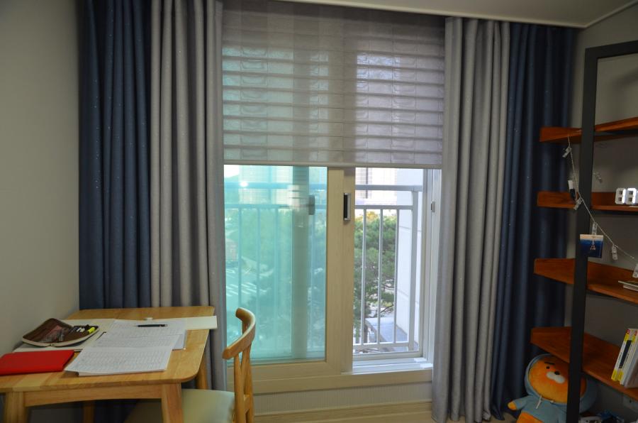 작은방은 고급형 콤비블라인드를 속 커튼 대신에하고