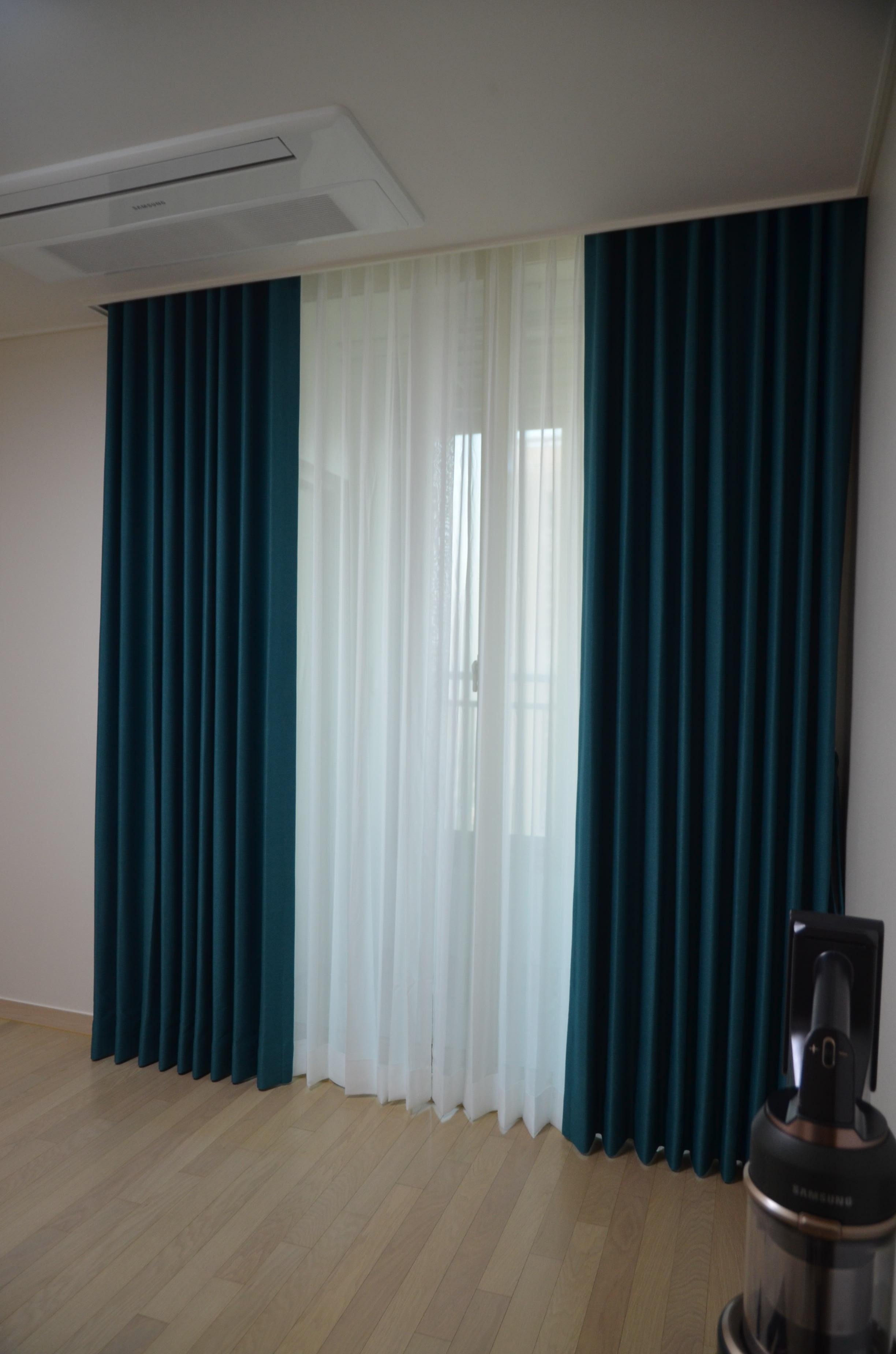 겉 커튼은 진그레이 암막커튼으로
