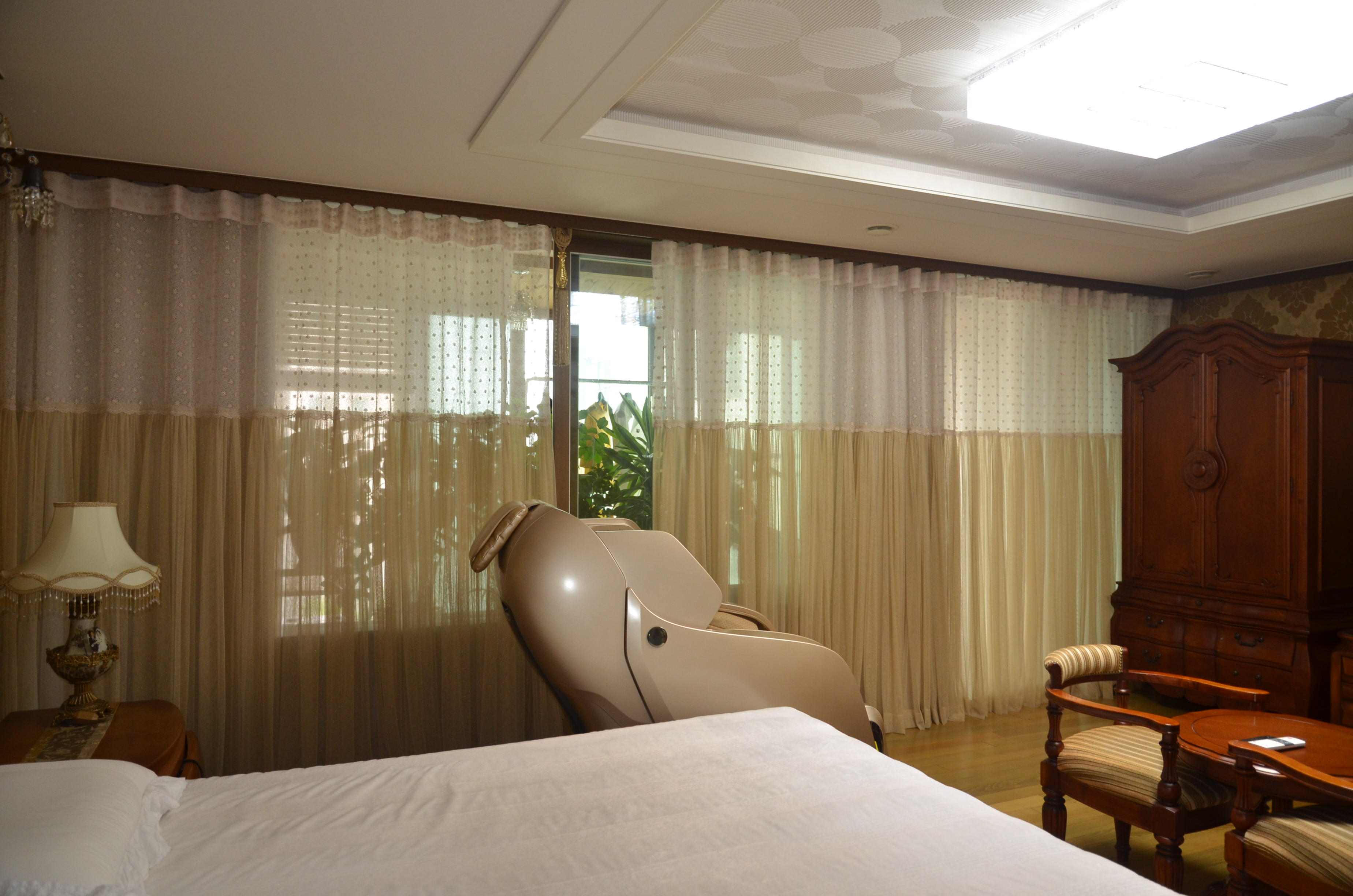 속 커튼은 화이트 쉬폰으로